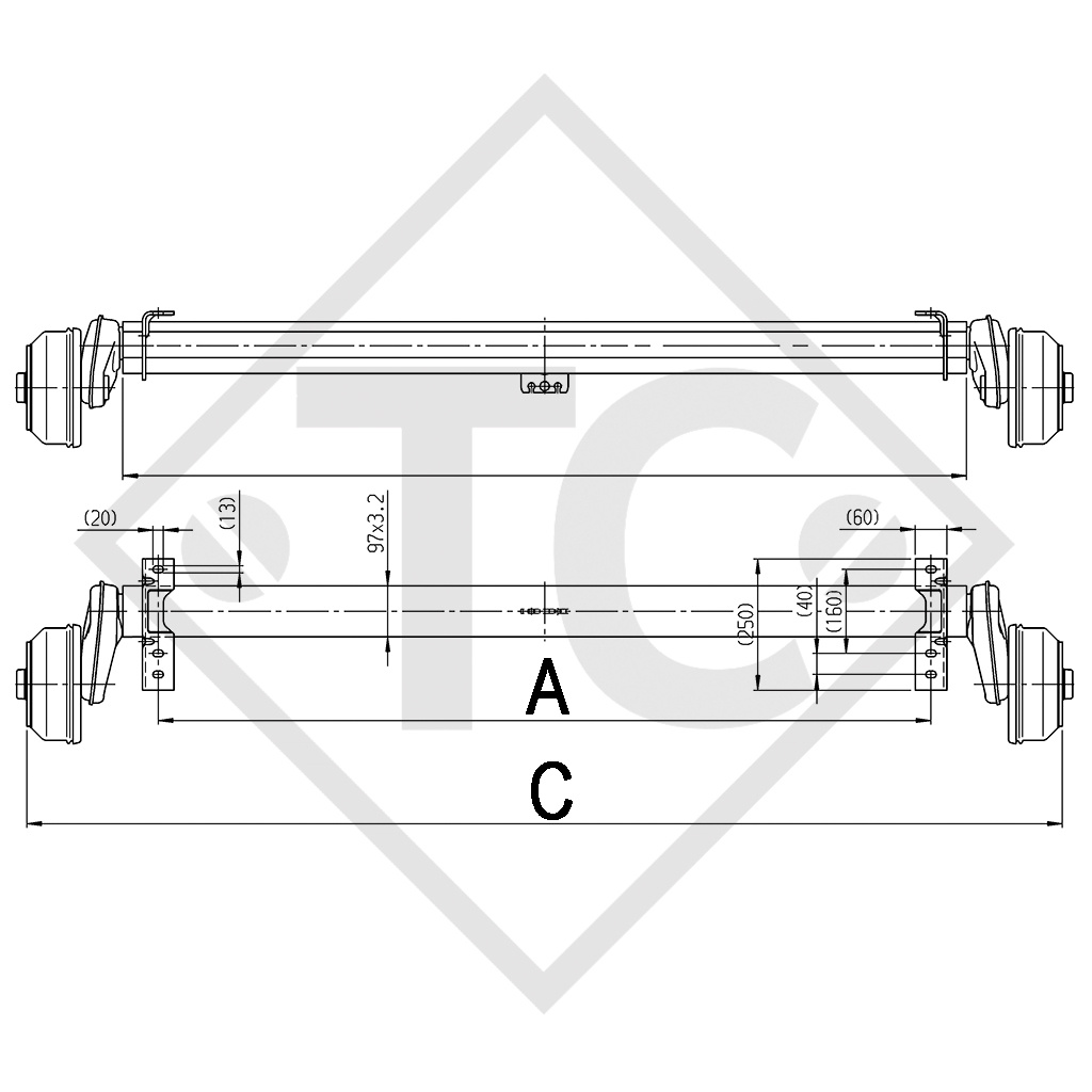 Startseite / FAHRGESTELLTEILE / FAHRGESTELLTEILE AL-KO / ACHSEN / ACHSEN GEBREMST & ZUBEHÖR / ACHSE GEBREMST 900 - 2000KG DELTA, ACHSEN FÜR WOHNWAGEN / Achse gebremst 1000kg EURO Compact Achstyp B 1000-3