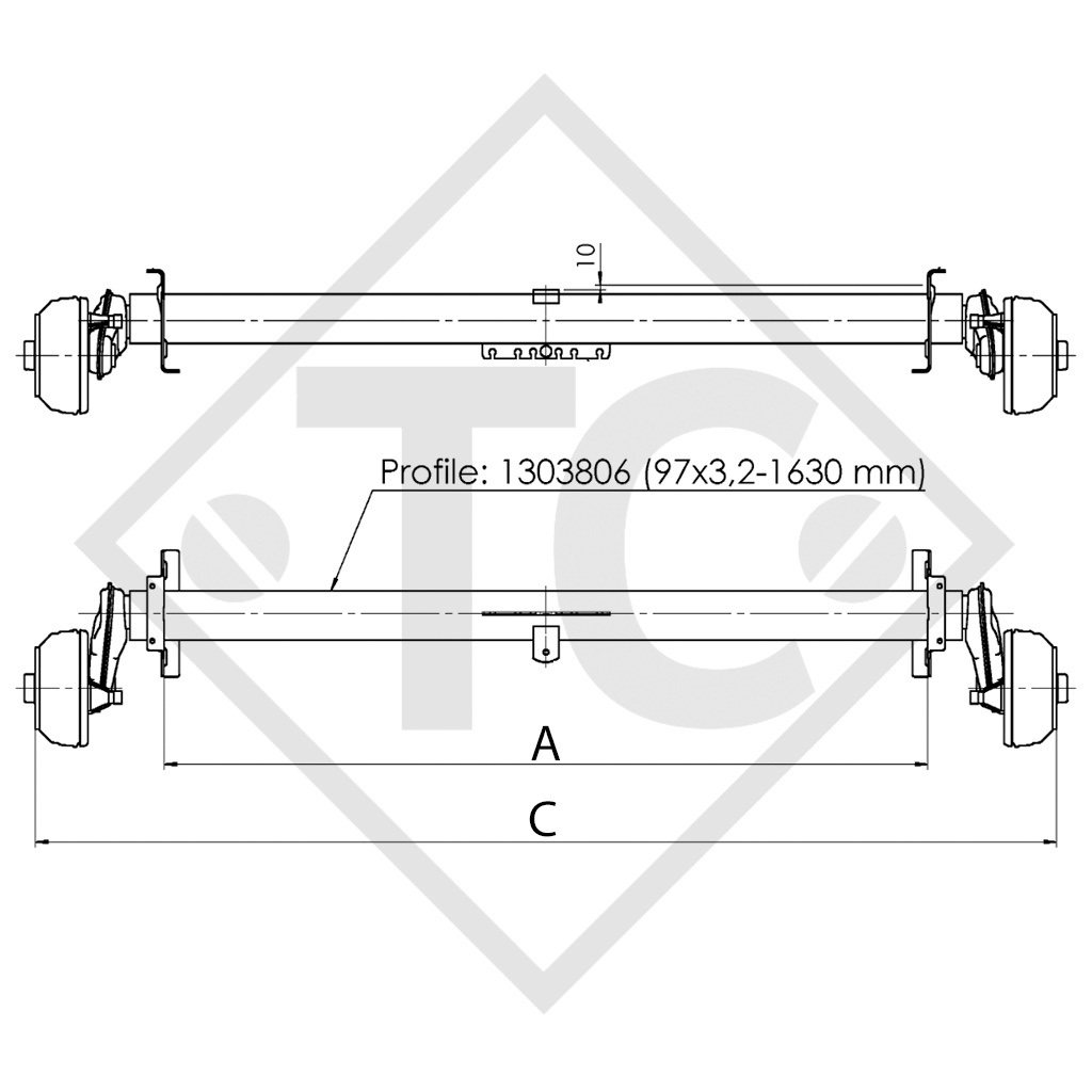 Auflage: Maß A 1010mm, Anlage: Maß C 1505mm, Radanschluss 100x4, Radbremse Typ 2051 Ausf. A, Einpresstiefe (ET) 27-33mm, Schwinghebelstellung 25°, Achsprofil 97mm. Lesen Sie mehr...