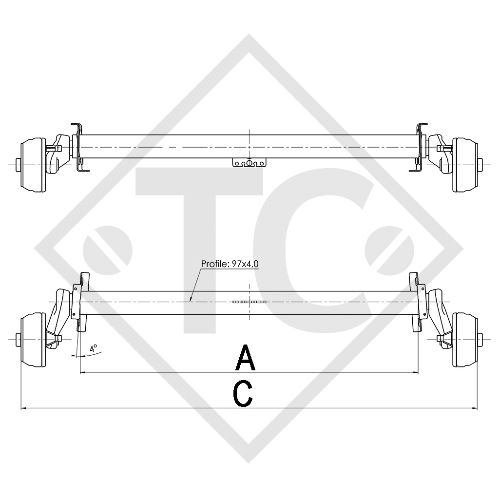 Auflage: Maß A 1415mm, Anlage: Maß C 1910mm, Radanschluss 112x5, Radbremse Typ 2051 Ab, Einpresstiefe (ET) 30mm, Schwinghebelstellung 25°, Achsprofil 97mm. Lesen Sie mehr...