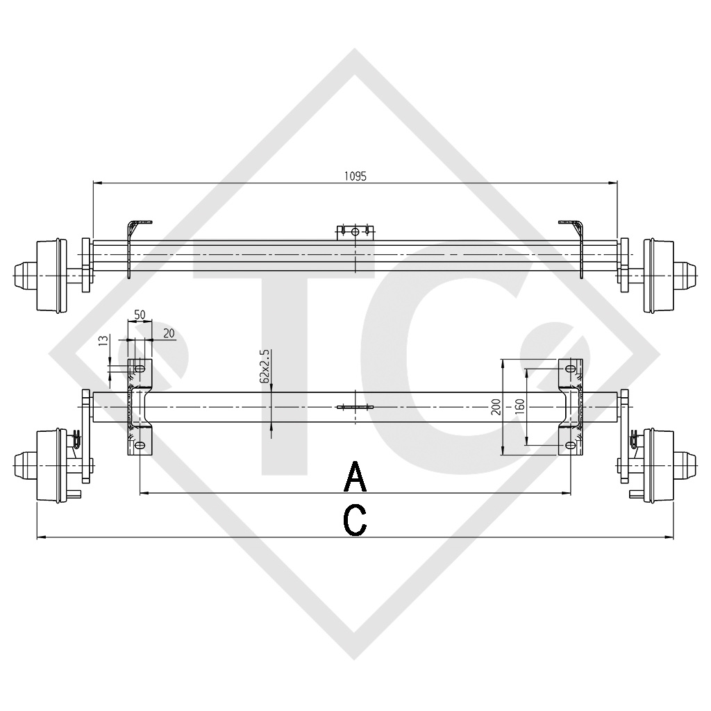 Auflage: Maß A 900mm, Anlage: Maß C 1330mm, Radanschluss 98x4, Radbremse Typ 135.30, Einpresstiefe (ET) 27-45mm, Schwinghebelstellung 20°, Achsprofil 62mm, Kegelradschrauben M12x1.5. Lesen Sie mehr...