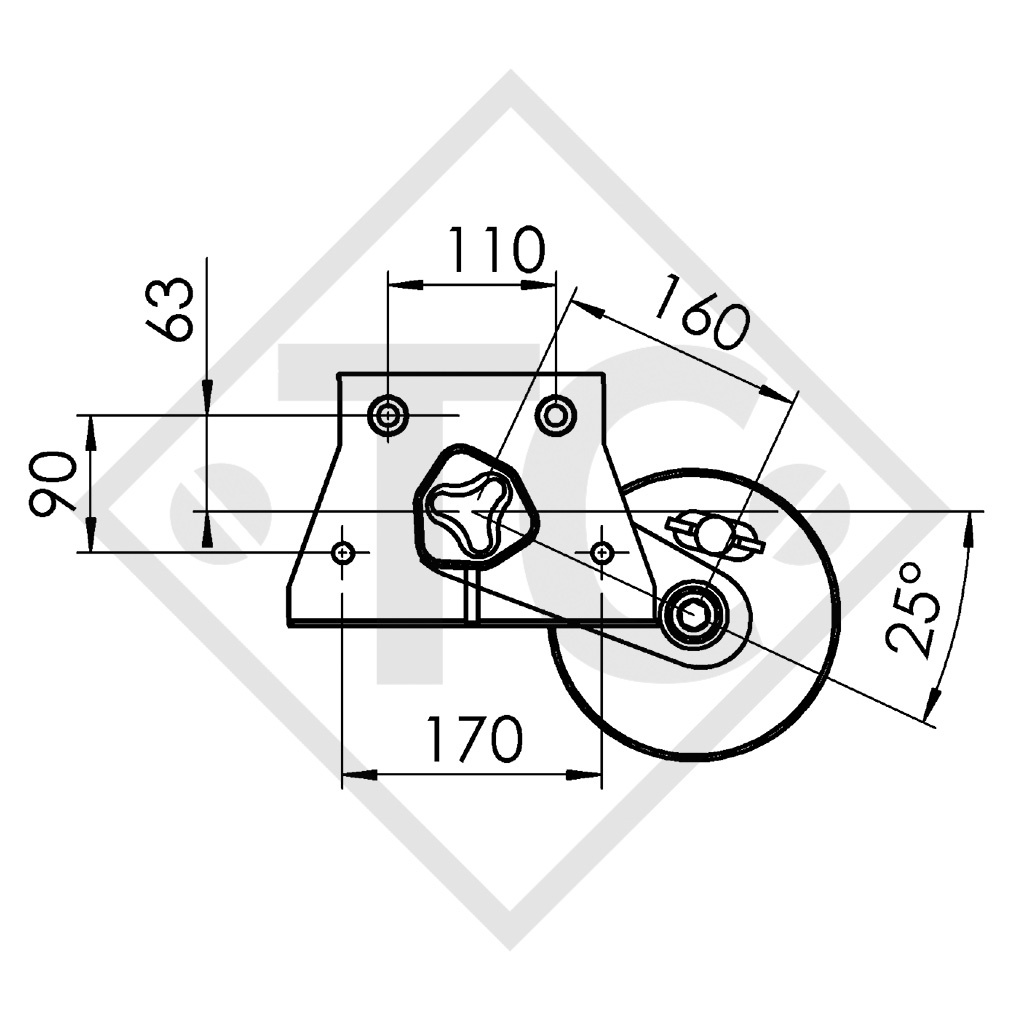 Schwinghebelstellung 25°