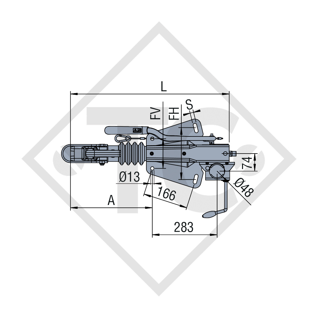 Anschluss 166mm, Stützlast 150kg, Ausführung Zugeinrichtung oben, kombinierbar mit BPW Radbremse S2005-7 und S2504-7 RASK, mit Kugelkupplung EM 300 R-B. Lesen Sie mehr...