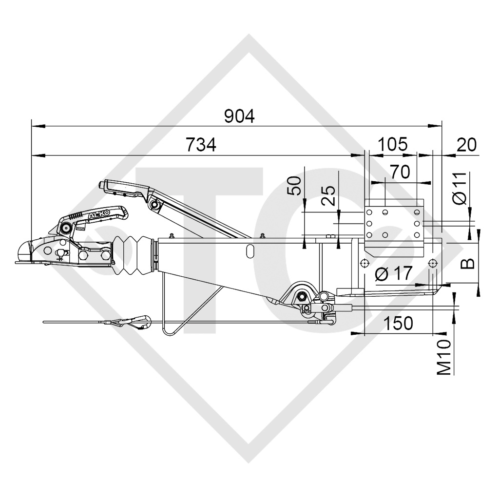 Anschluss Maß B 100mm, Stützlast 100kg, kombinierbar mit AL-KO Radbremse 2361, mit Kugelkupplung AK 161, Soft-Dock. Lesen Sie mehr...