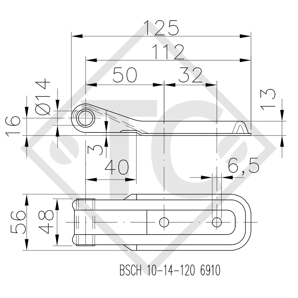 Startseite / FAHRGESTELLTEILE / FAHRGESTELLTEILE AL-KO / ACHSEN / ACHSEN GEBREMST & ZUBEHÖR / ZUBEHÖR FÜR ACHSEN GEBREMST / ACHSBOWDENZÜGE RADBREMSE / HALTER FÜR ACHSBOWDENZÜGE / WINTERHOFF Bordwandscharnier Typ BSCH 10-14-120-PO, Verpackungseinheit 100 Stück
