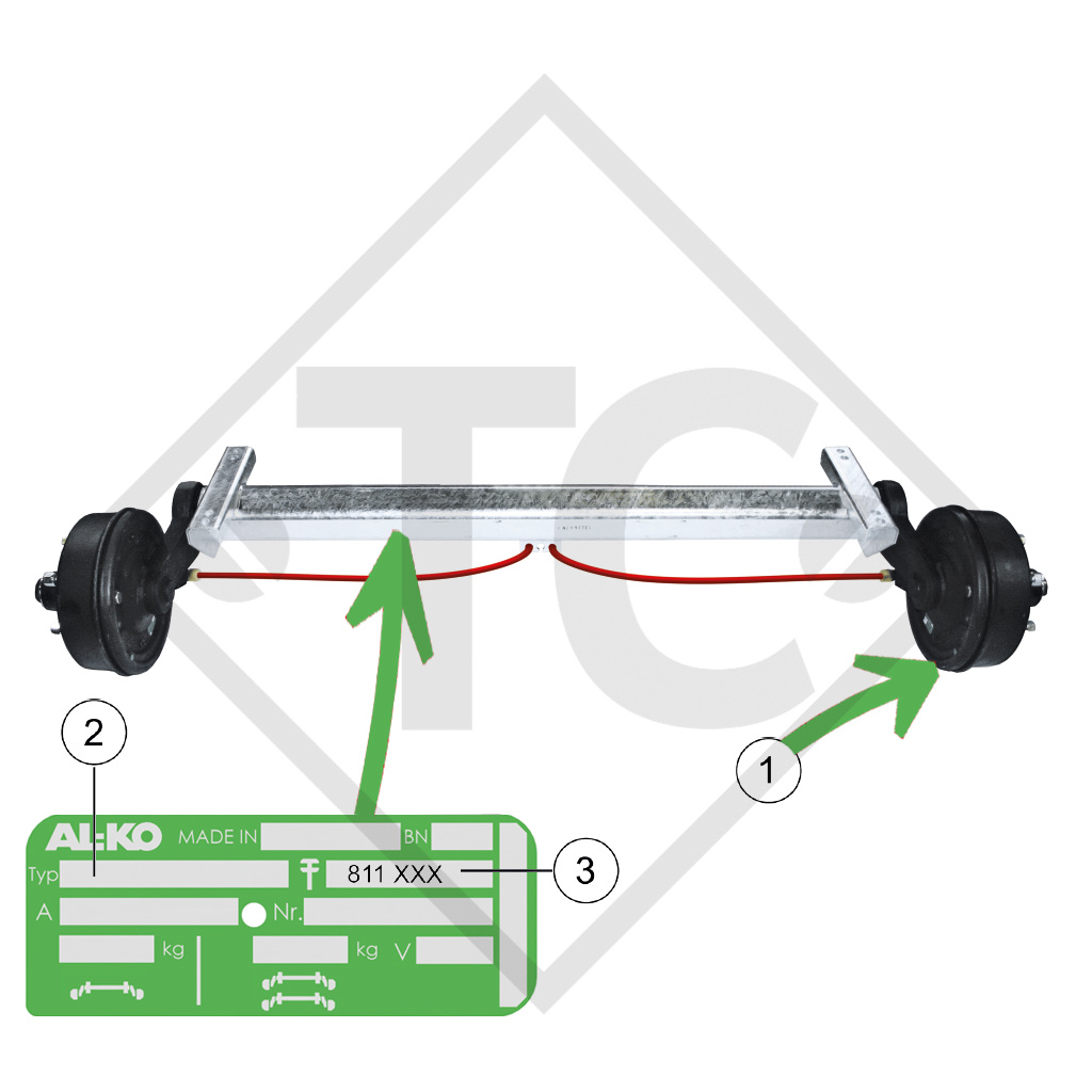Lieferumfang für eine Achse (2 Radbremsen) - siehe Abbildung