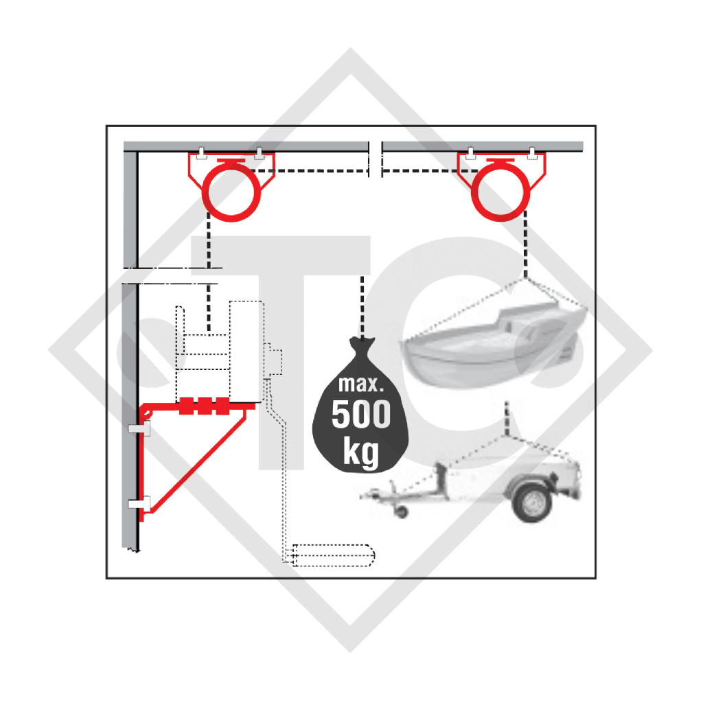 für AL-KO Winden Typ BASIC und PLUS bis max. 500kg, Oberflächenbehandlung verzinkt.