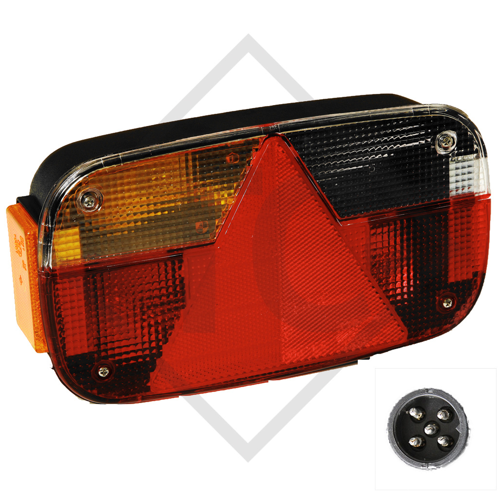 mit Blink-, Rück- und Bremslicht, Dreieckrückstrahler, Kennzeichen- und Nebelschlussleuchte, links montierbar, Anschluss 5 pol. Bajonett.