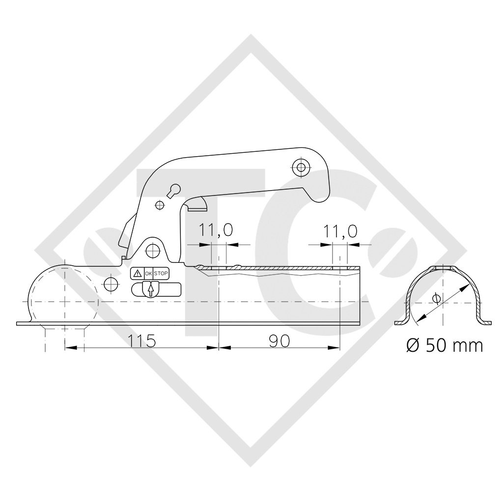 Deichsel ⌀50mm rund, Bohrungen (Verschraubung) vertikal 11mm, Lochabstand 90mm, zul. Gesamtgewicht 800kg, Stützlast 75kg, Material: Stahl. Lesen Sie mehr...