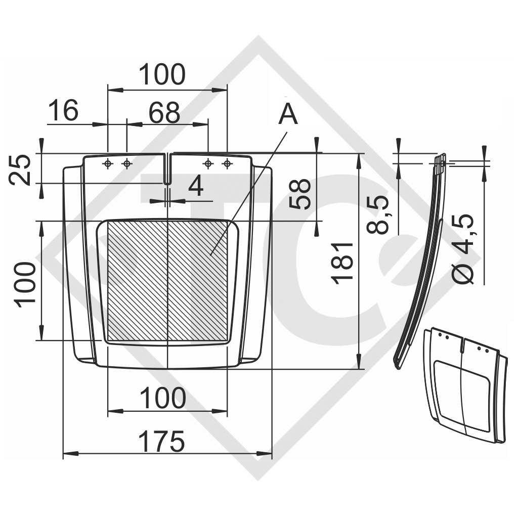 Startseite / FAHRGESTELLTEILE / FAHRGESTELLTEILE SCHLEGL / ACHSEN / ACHSEN UNGEBREMST & ZUBEHÖR / ACHSE STARR UNGEBREMST MIT BLATTFEDERUNG / ACHSE STARR UNGEBREMST 750KG / Spritzschutz passend für Kotflügel Typ EA 200 passend für alle gängigen Anhängertypen