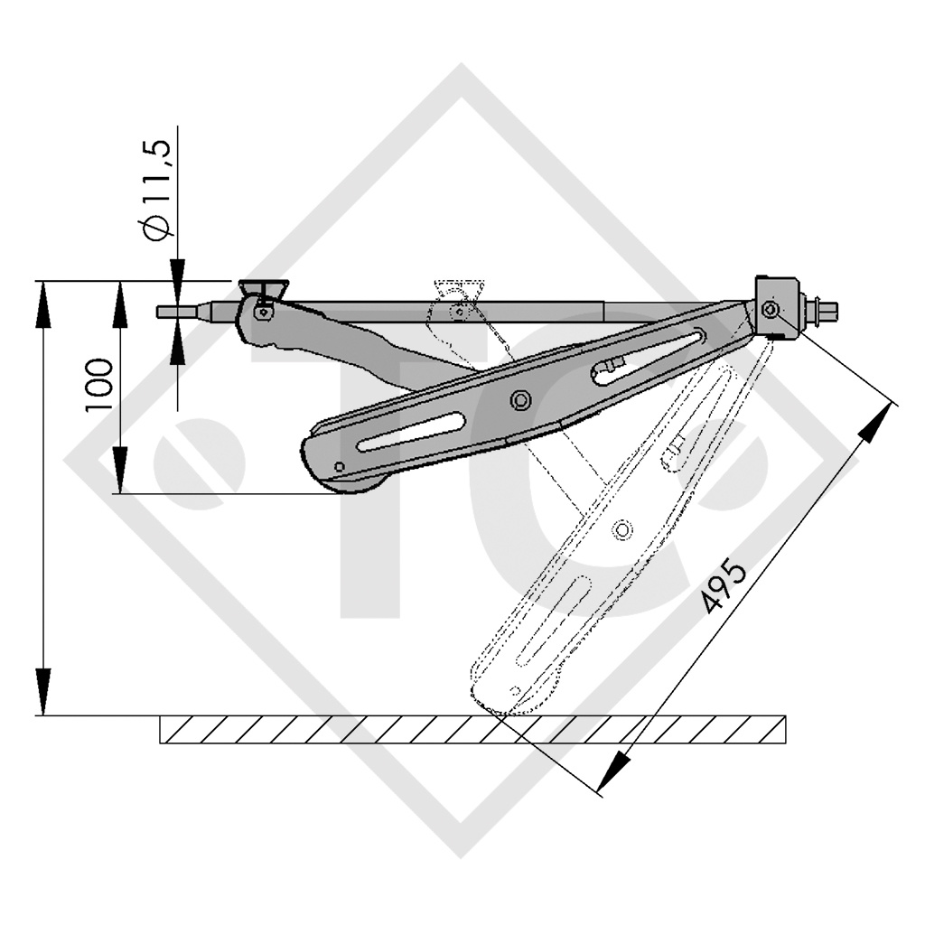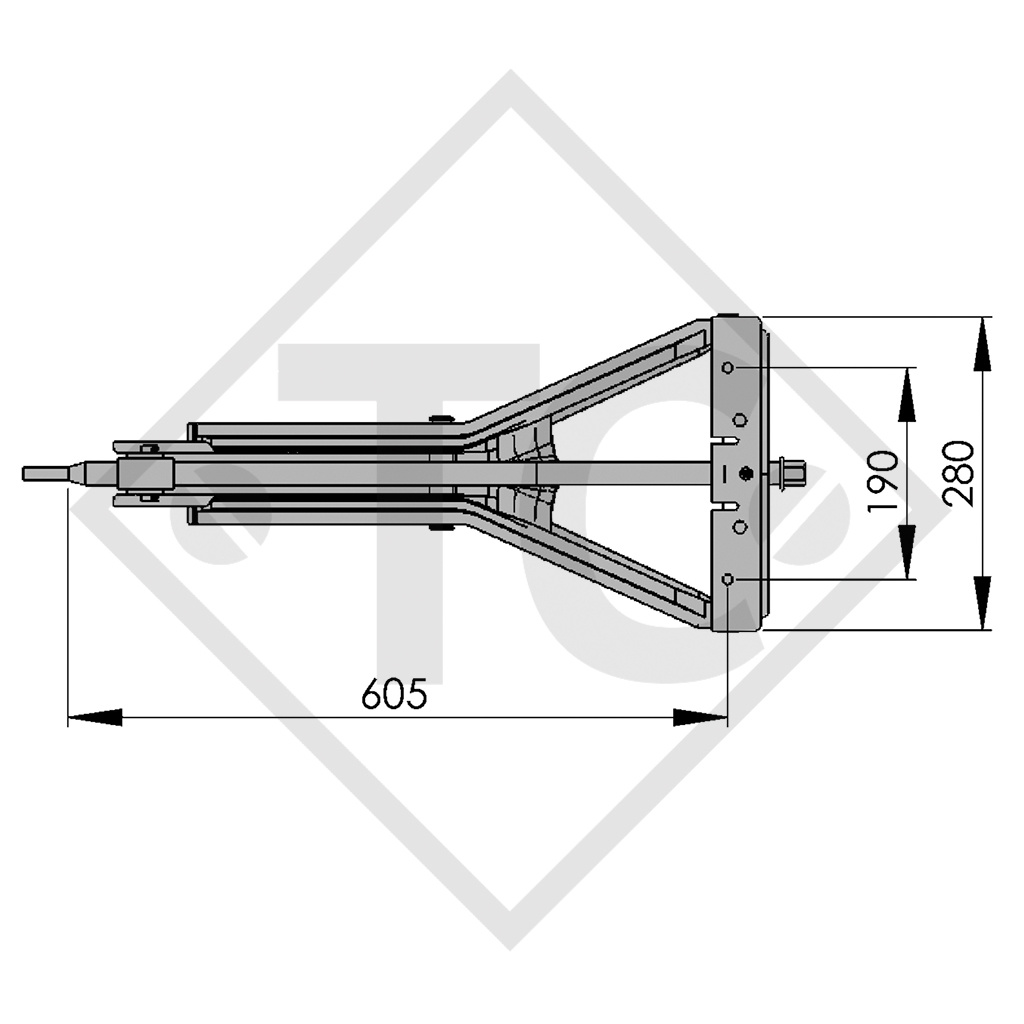 Länge 605mm, Höhe max. 470mm bei 60°, Stützlast im Stand max. 1000kg, zul. Gesamtgewicht des Anhängers (Empfehlung) max. 2000kg, feuerverzinkt, Aufsteckkurbel.