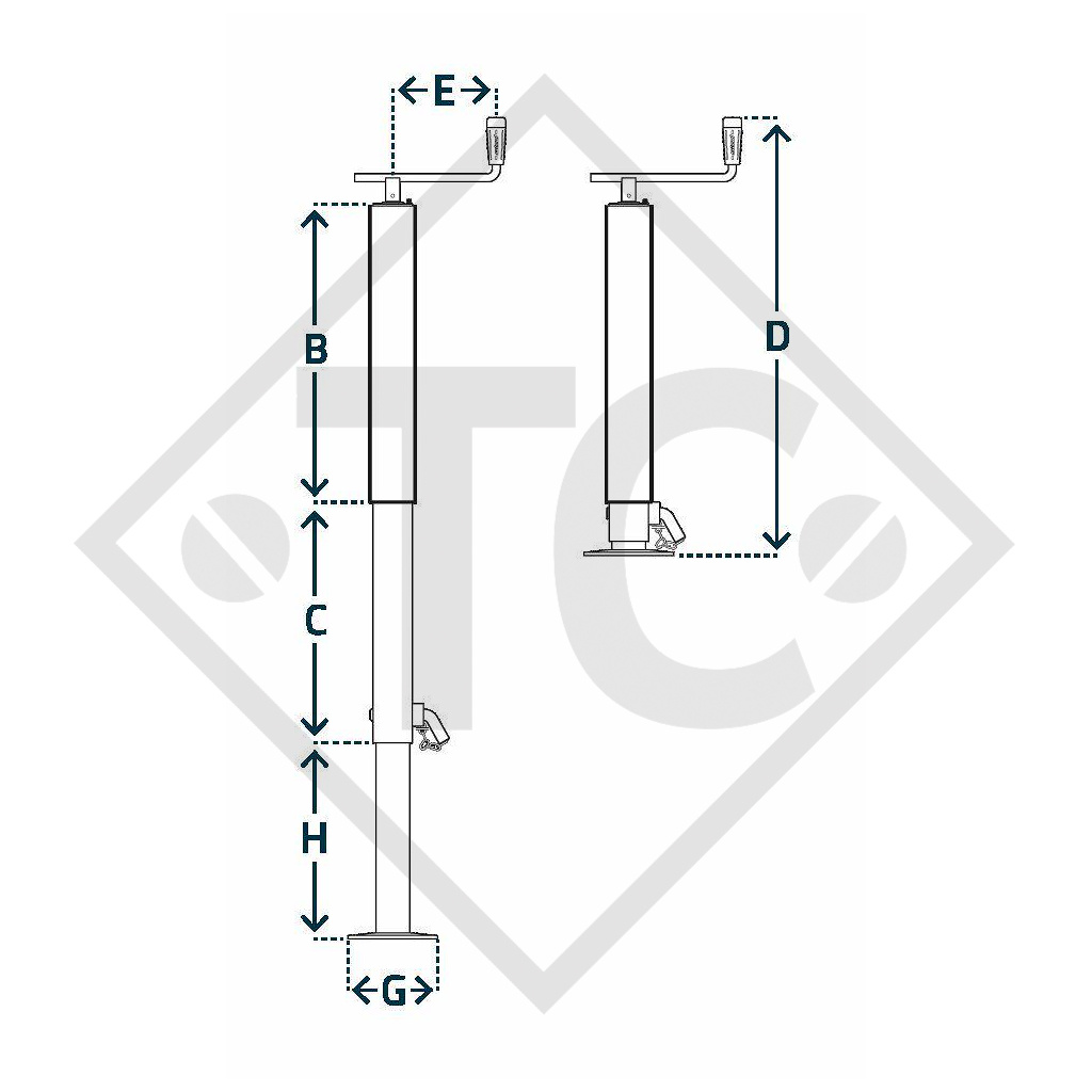 Startseite / Marken / BPW / Stützfuß □80mm vierkant, Kurbel oben, dreistufig, Typ P 575/3SF, für landwirtschaftliche Maschinen und Anhänger, Maschinen für Bauindustrie, Straßeninstandsetzung- und Schneeräumungsmaschinen