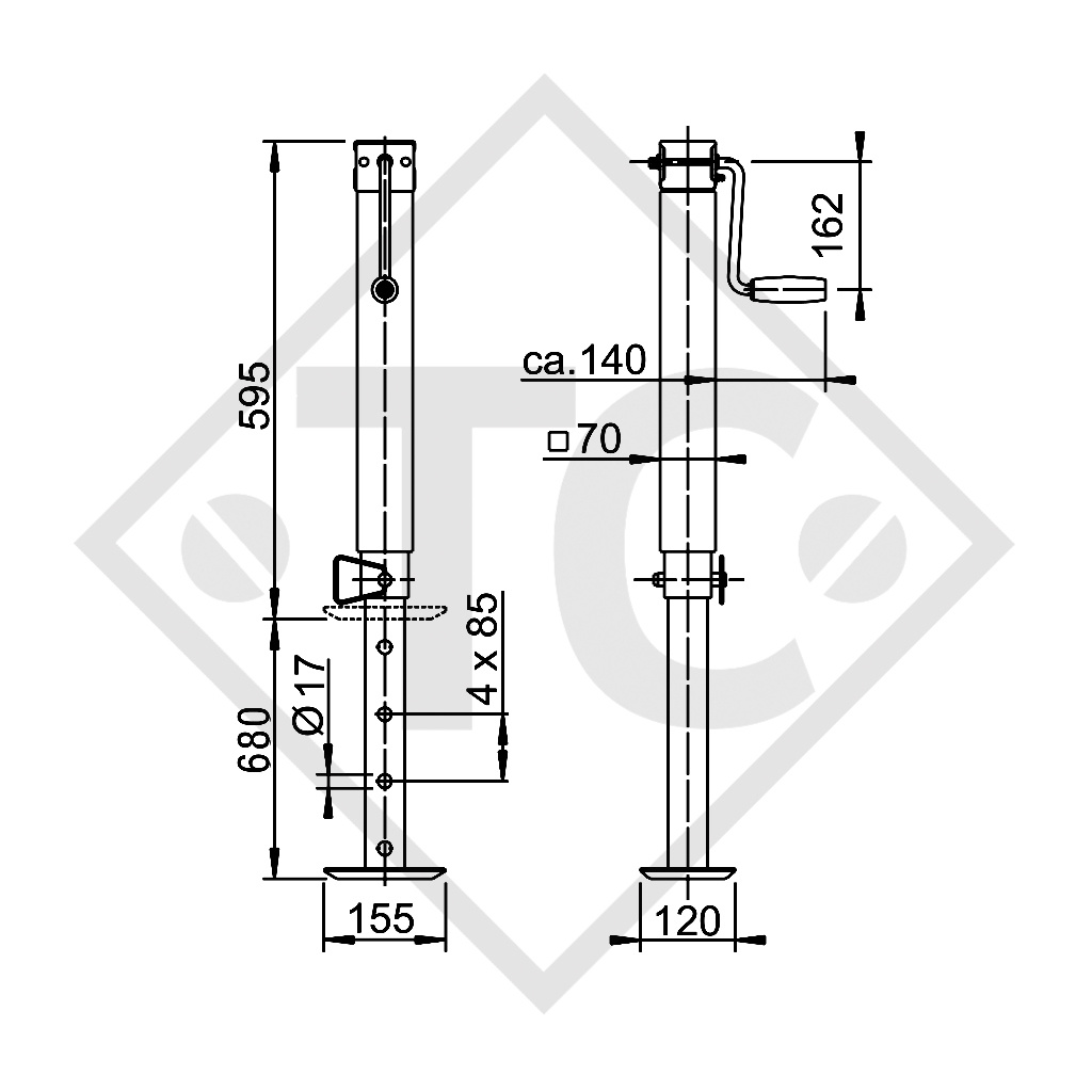 Startseite / Stützfuß Spindel 70x70mm vierkant, 1223191, passend für alle gängigen Anhängertypen