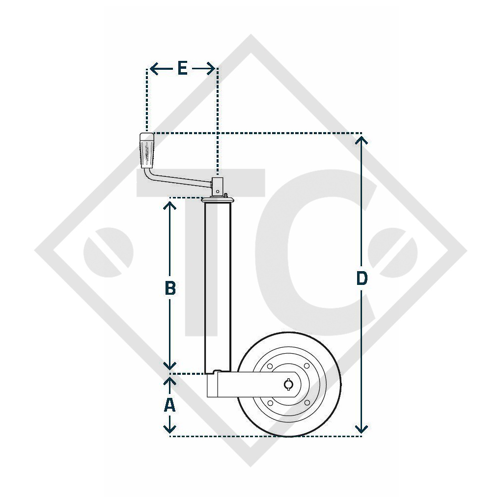 Startseite / Stützrad ø57mm rund Typ FC 267 mit Felge Stahl, für Wohnwagen, PKW-Anhänger, Maschinen für die Bauindustrie, Dockanlagen und Wartungsbühnen