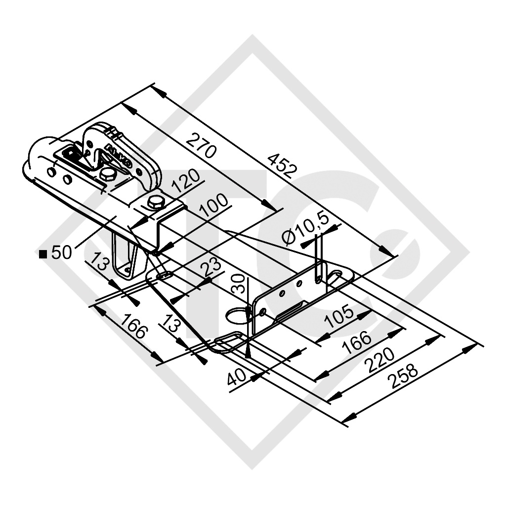 Startseite / Zugeinrichtung 75 VR mit Kugelkupplung AK 7 PLUS 50 - Obeneinbau ohne Fangseil für ungebremste Anhänger