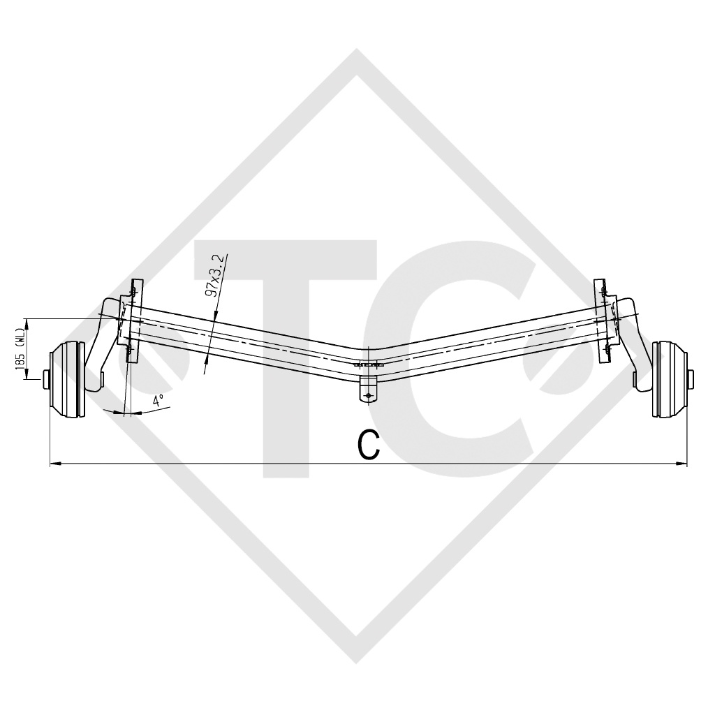BC: dimension A 1415mm, OHF: dimension C 1895mm, wheel connection 100x4, wheel brake type 2051 vers. A, offset (ET) 30mm, swing arm position 16°, axle profile 97mm, taper-head wheel bolts M12x1.5. Read more...