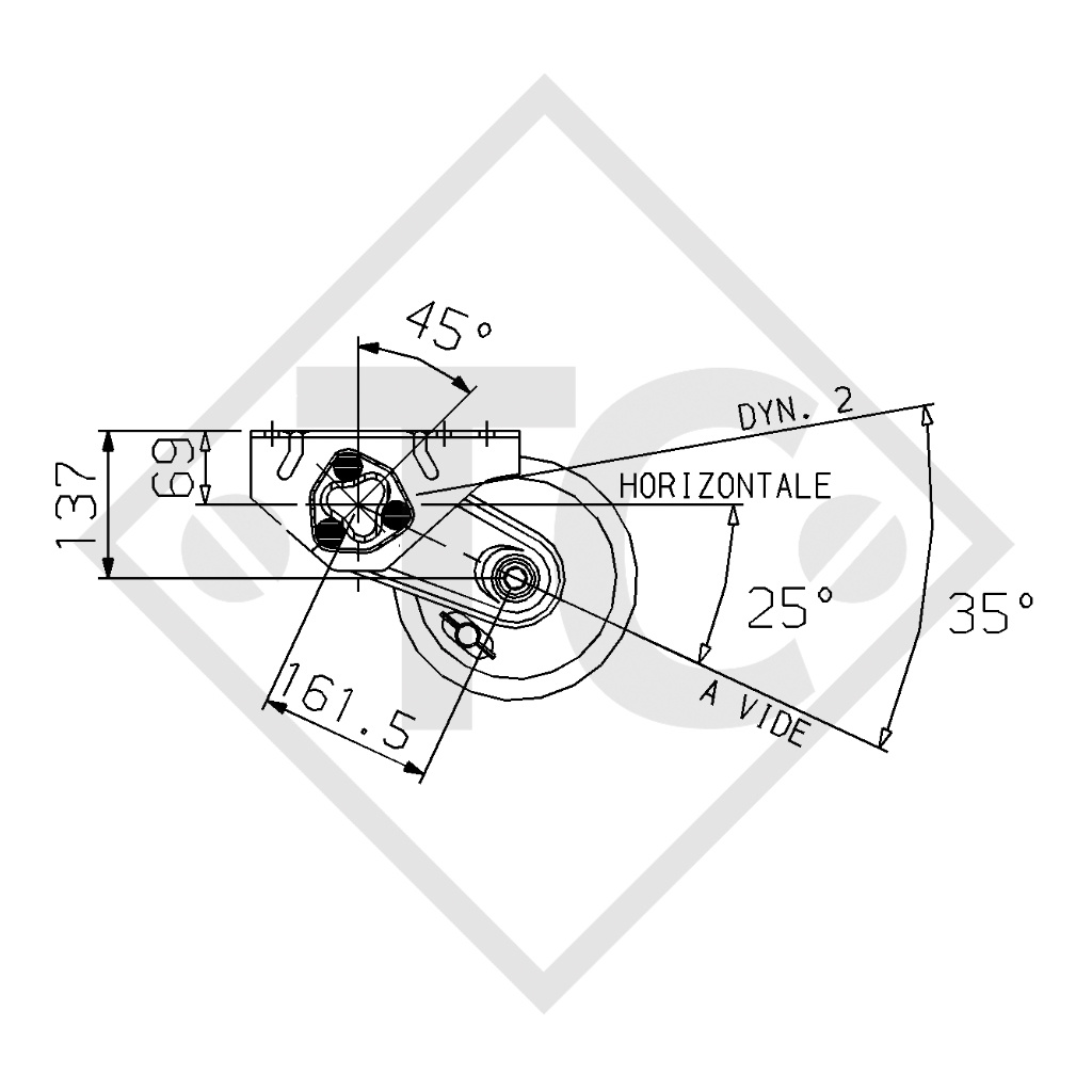 BC: dimension A 1571mm, OHF: dimension C 1990mm, wheel connection 130x4, wheel brake type 2051 A, offset (ET) 20mm, swing arm position 25°, axle profile 97mm, ball-head wheel bolts M14x1.5. Read more...