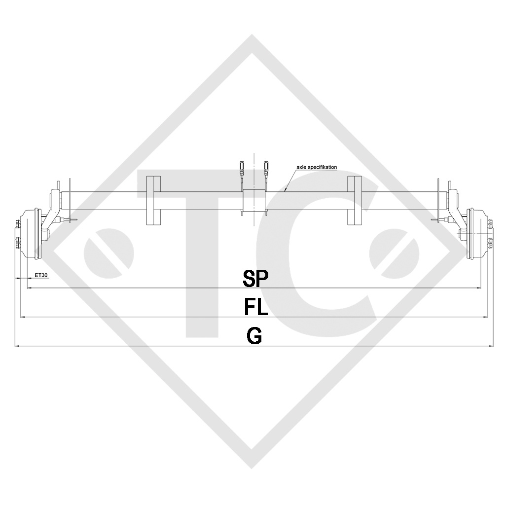 Home / Braked axle SWING 1350kg axle type CB 1355, 46.25.379.677