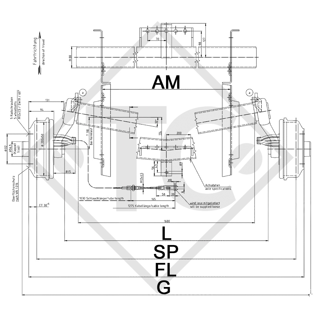 BC: dimension AM 1420mm, OHF: dimension FL 1970mm, wheel connection 112x5, wheel brake type S 2005-7 RASK, offset (ET) 30-35mm, swing arm position 20°, axle profile 80mm, taper-head wheel bolts M12x1.5. Read more...