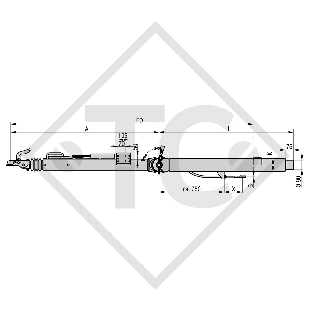 Home / CHASSIS PARTS / CHASSIS PARTS AL-KO / TOWBAR CONNECTIONS / TOWBAR CONNECTION TOOTHED WASHER 162 VB HEIGHT-ADJUSTABLE WITH DRAWBAR SECTION UP TO 1600KG / Drawbar installation ZAA 3.5-1.1 with overrun device AK 3510 A and removable drawbar section from 2500 to 3500kg, 47.51.181.004