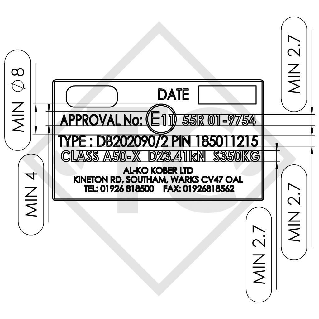- Pre-drilled sliding plate with 4 holes for fastening with 2 or 4 bolts as per Directive ECE-R55-01