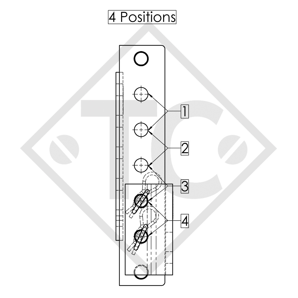 height-adjustable: 4 positions in 50mm steps, 2 bolt variant, 2x bolts with Ø 19mm for secure fastening with split pins, pre-drilled sliding plate with 4 holes for fastening with 2 or 4 bolts as per Directive ECE-R55-01. Read more...