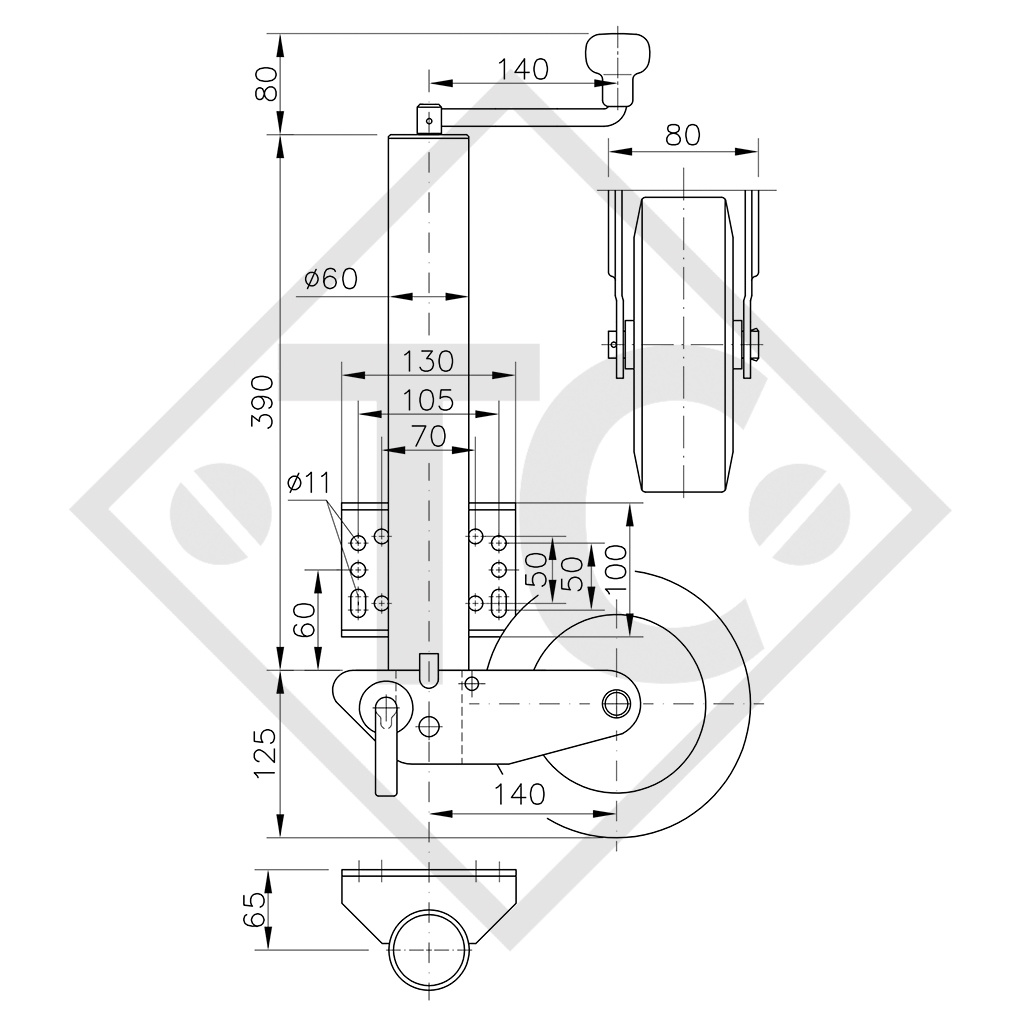 stationary nose load max. 250kg, nose load when manoeuvring max.150kg, rim steel, wheel 200x50mm solid rubber, extended length 180 + 230mm. Read more...