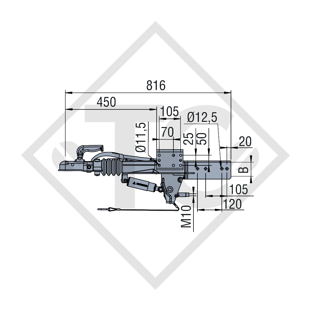 connection dimension B 70mm, nose load 100kg, combined with BPW wheel brake S1704-7 and S2005-7 RASK, with coupling head WW 13-N. Read more...