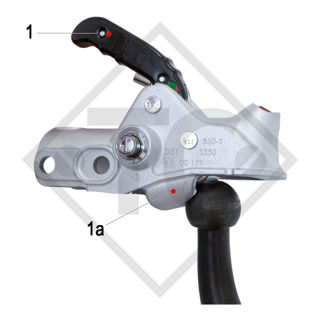 The car's towing hitch engages. Only at this point does the hand grip move to the hori-zontal position, and indicate to the user: Hitch is locked!