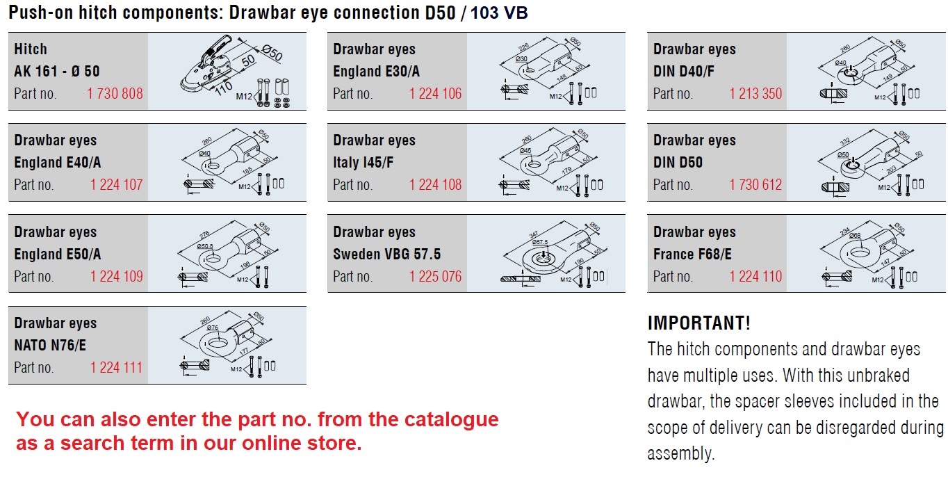 * = DIN drawbar eye (the dimensions must be recalculated for other hitch components)