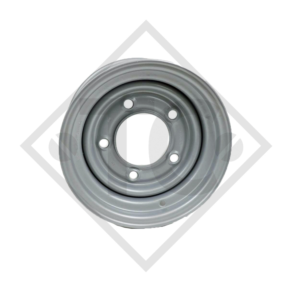 rim size 6.00x12, hole number 5, rim centre hole Ø 114.5mm, bolt circle 165.1mm, offset 0, colour silver RAL9006, C80 taper-head, load capacity 900kg at 140km/h. Read more...