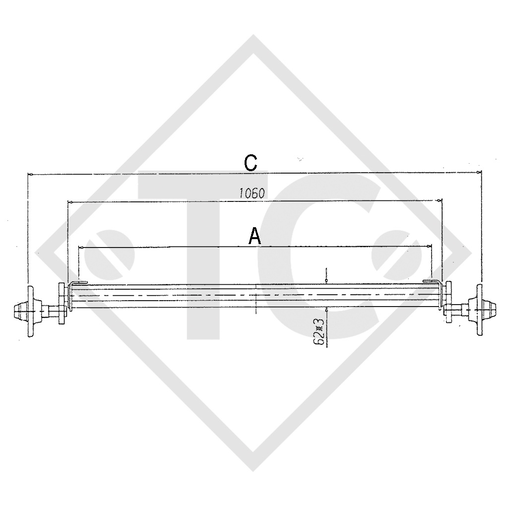 BC: dimension A 1285mm, OHF: dimension C 1285mm, wheel connection 100x4, offset (ET) 0mm, ball-head wheel bolts M12x1.5. Read more...