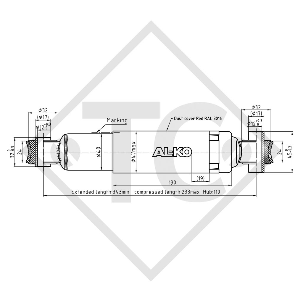 para ejes BPW/AL-KO - eje recto y eje delta, eje sencillo hasta 1050kg, eje tándem hasta 2100kg, color rojo. Leer más...