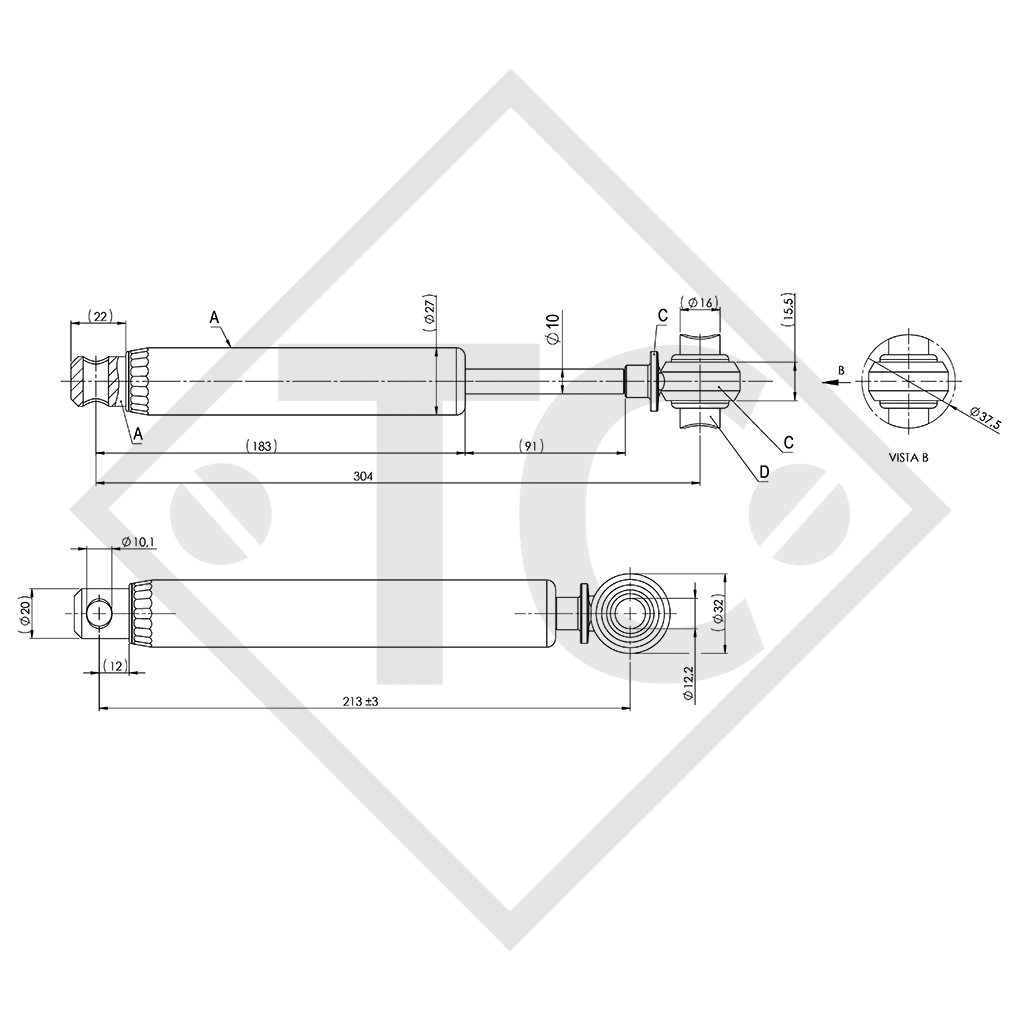 Inicio / CHASIS DE REMOLQUE, PIEZAS / CHASIS DE REMOLQUE, PIEZAS AL-KO / LANZAS / LANZAS CUADRADAS RECTAS HASTA 750KG / Amortiguador, versión con 2 ojetes, 1206341
