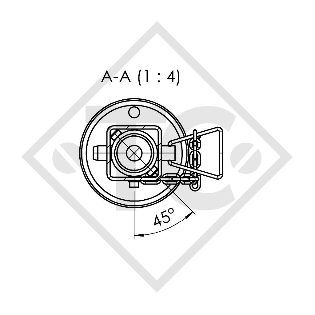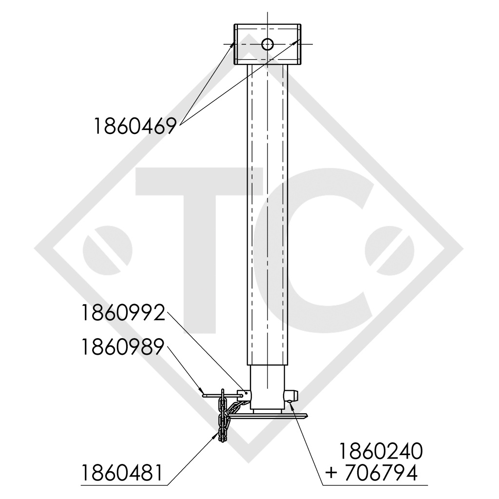 Inicio / CHASIS DE REMOLQUE, PIEZAS / CHASIS DE REMOLQUE, PIEZAS SCHLEGL / EJES / EJES CON FRENO & ACCESORIOS / Apoyo con husillo □60mm cuadrado, abatible 90° lateralmente, 1863473, para los remolques convencionales