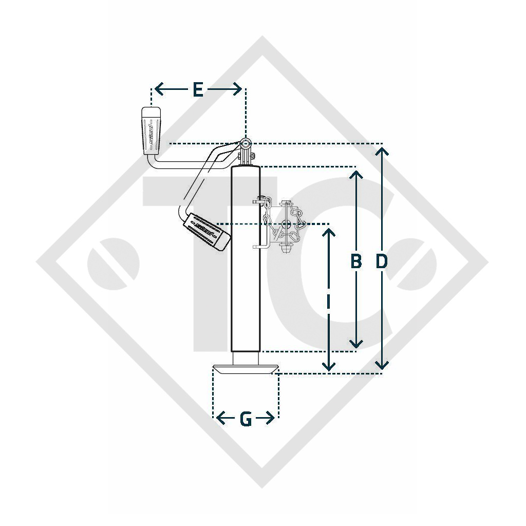 elevación (longitud de desenroscado) 250mm, máx. capacidad portante estática 1300kg, cota B 330mm, cota D 410mm, cota E 168mm, cota G 120x165mm, cota I 265mm. Leer más...