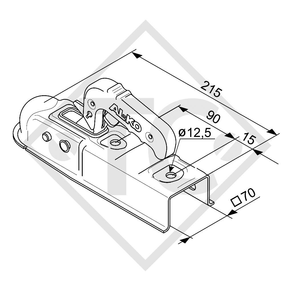 ⌀ lanza 70mm cuadrado, agujeros (atornillamiento) vertical 12.5mm, distancia entre agujeros 90mm, peso total permitido 750kg, carga vertical 75kg, material: acero, con soporte de enchufe. Leer más...