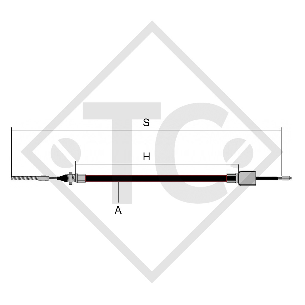 longitud funda (H) 500mm, longitud cable (S) 760mm, adecuado para freno de rueda 3062 y 3081 a partir año 01/1989, campana interior 25.5mm, exterior 30mm. Leer más...