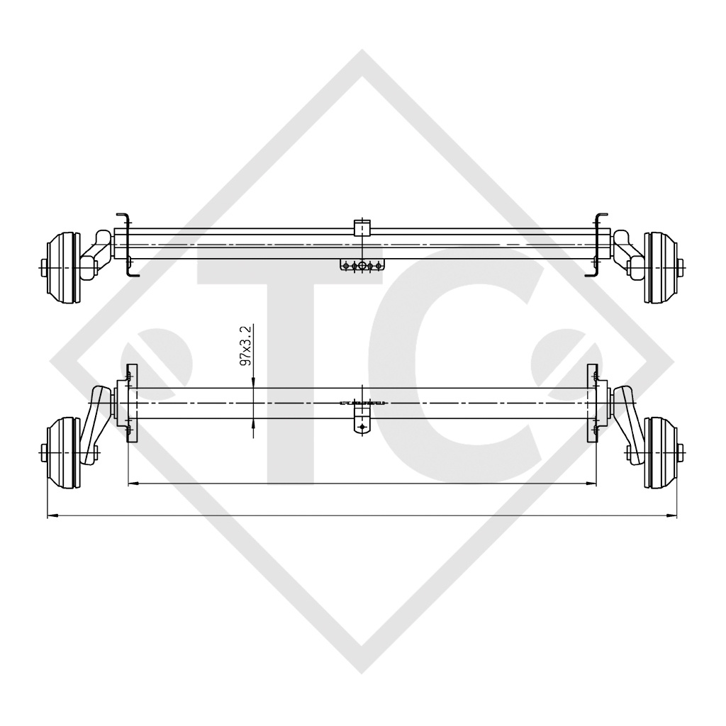 Inicio / CHASIS DE REMOLQUE, PIEZAS / CHASIS DE REMOLQUE, PIEZAS AL-KO / ENGANCHES DE INERCIA / ENGANCHES DE INERCIA EN V / LANZAS EN V, SOPORTE UNIÓN EJE-LANZA, TRAVESAÑO DE RUEDA JOCKEY, VARILLA DE FRENO / VARILLA DE FRENO CON TORNILLERÍA / Eje con freno 1300kg EURO PLUS tipo de eje B 1200-5