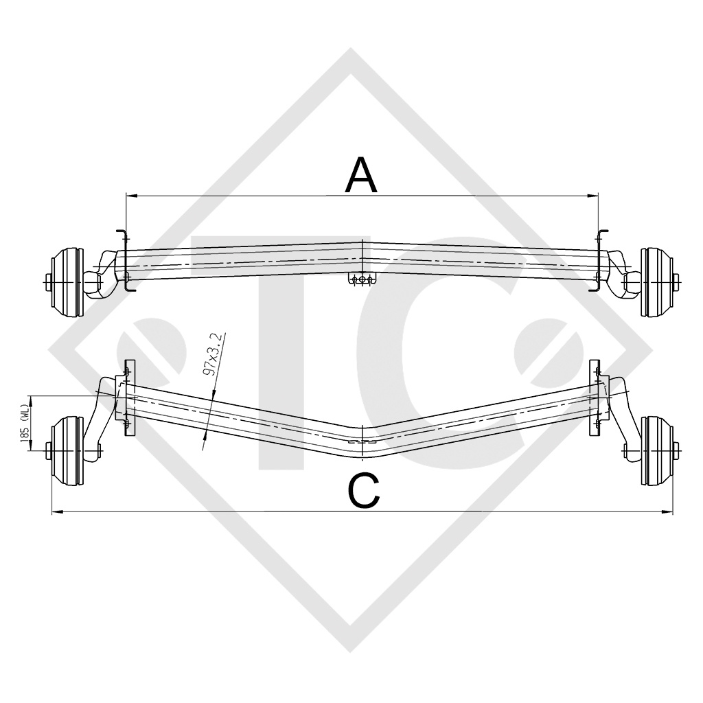 cota A 1550mm, cota C 2038mm, ataque 112x5, tipo de freno de rueda 2051 A, bombeo (ET) 30mm, posición del brazo oscilante 16°, perfil de eje 97mm, pernos de rueda esférico M12x1.5. Leer más...
