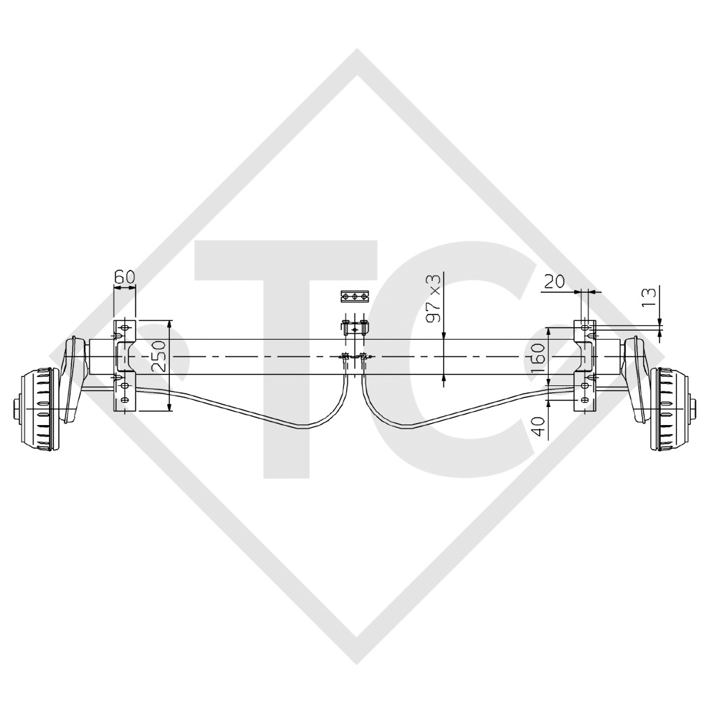 cota A 1270mm, cota C 1840mm, ataque 130x4, tipo de freno de rueda 2051 Aa, bombeo (ET) 20-33mm, posición del brazo oscilante 25°, perfil de eje 97mm, pernos de rueda esférico M12x1.5. Leer más...