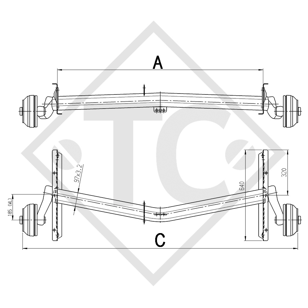 Inicio / Eje con freno 1360kg EURO Plus tipo de eje DELTA SIN 12-3 - Bürstner