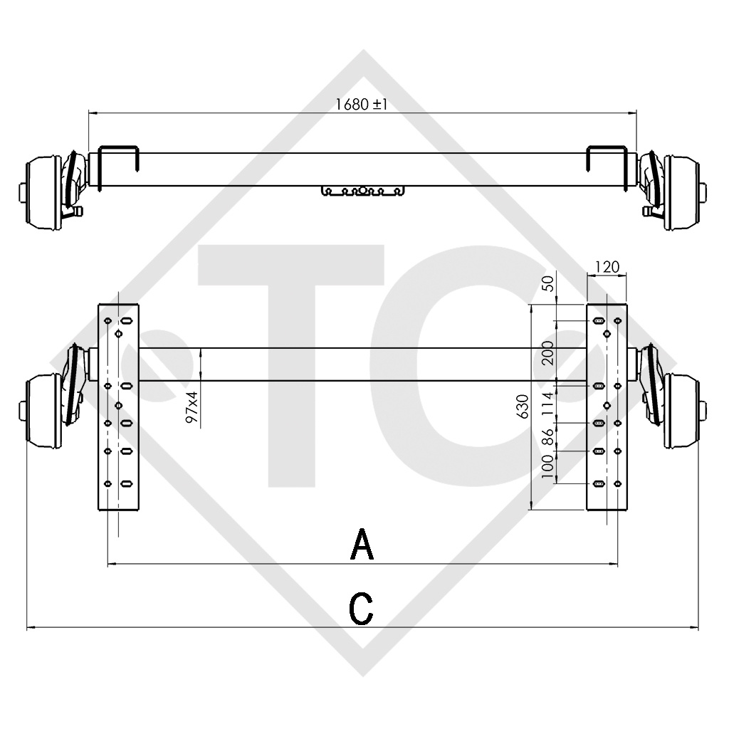 Inicio / Etiquetas / bpw essieu cb855 / Eje con freno 1500kg COMPACT tipo de eje B 1600-3
