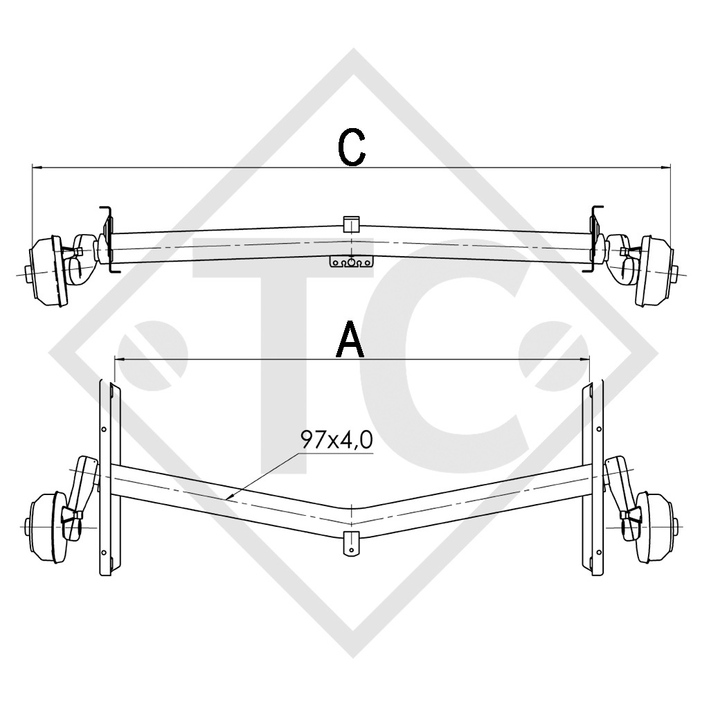 cota A 1570mm, cota C 2080mm, ataque 112x5, tipo de freno de rueda 2051 versión Ab, bombeo (ET) 30mm, posición del brazo oscilante 0°, perfil de eje 97mm. Leer más...