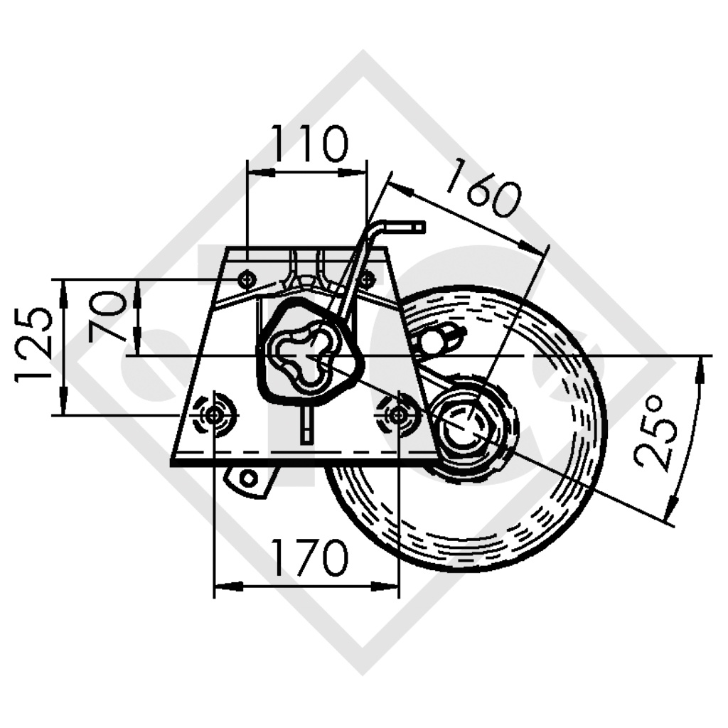 cota A 1545mm, cota C 2025mm, ataque 112x5, tipo de freno de rueda 2361, bombeo (ET) 30mm, posición del brazo oscilante 25°, perfil de eje 97mm, pernos de rueda esférico M12x1.5. Leer más...