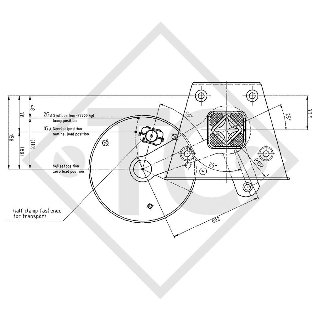 cota AM 1450mm, cota FL 1960mm, ataque 100x4, tipo de freno de rueda S 2005-7 RASK, bombeo (ET) 30mm, posición del brazo oscilante 25°, perfil de eje 80mm, pernos de rueda cónicos M12x1.5. Leer más...