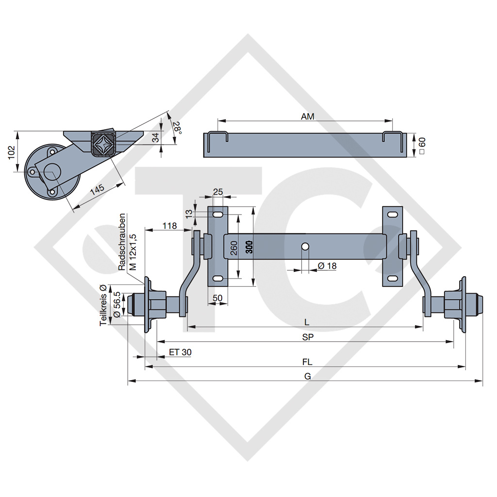 Ref 35, 1626287802. Cota A 770mm, cota C 1210mm, ataque 100x4, perfil de eje 60mm, pernos de rueda cónicos M12x1.5. Leer más...