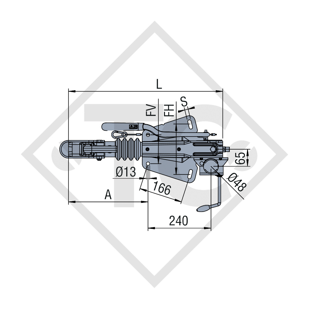 conexión 166mm, carga en bola 75kg, versión instalación de lanza de remolque abajo, combinable con freno de rueda BPW S1704-7 y S2005-7 RASK, con cabezal WS 3000-D. Leer más...
