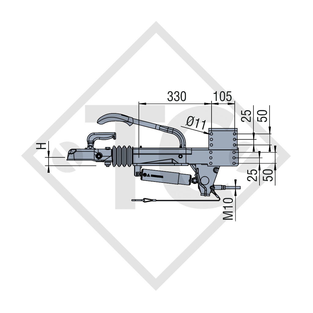 conexión 166mm, carga en bola 150kg, versión instalación de lanza de remolque abajo + arriba, combinable con freno de rueda BPW S2005-7, S2504-7 y S3006-7 RASK, con cabezal EM 300 R-B. Leer más...