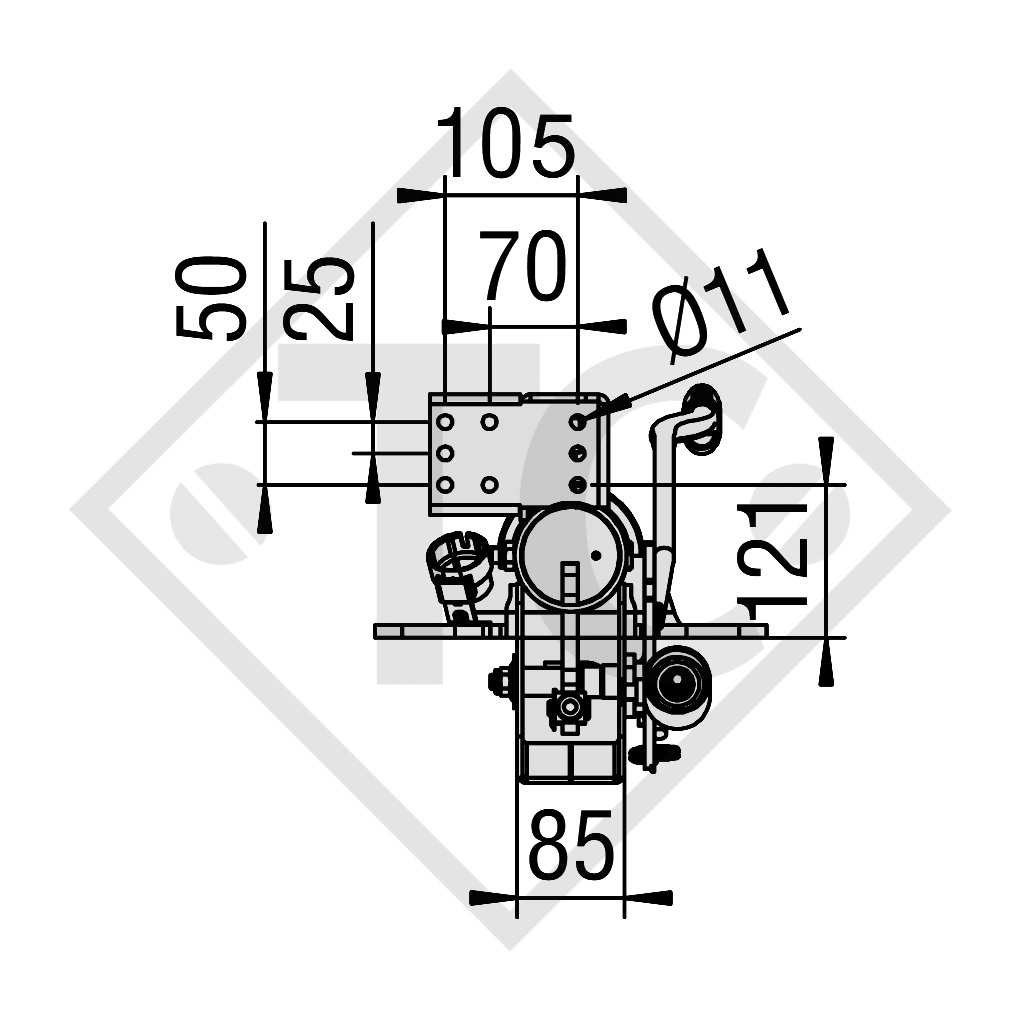 Inicio / CHASIS DE REMOLQUE, PIEZAS / CHASIS DE REMOLQUE, PIEZAS AL-KO / ENGANCHES DE INERCIA / ENGANCHES DE INERCIA EN V / LANZAS EN V, SOPORTE UNIÓN EJE-LANZA, TRAVESAÑO DE RUEDA JOCKEY, VARILLA DE FRENO / UNIONES DE LANZA EN V 1000KG A 3500KG / UNIONES DE LANZA EN V TIPO 251T A 2800KG / Enganche de inercia en V tipo ZAF 3.5-3, 2500 a 3500kg, 48.51.583.002