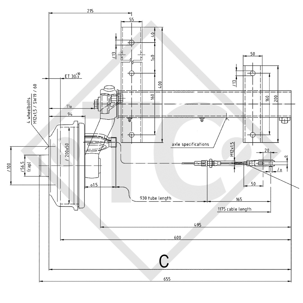 cota A 315mm, cota C 630mm, ataque 100x4, tipo de freno de rueda S 2005-7 RASK, bombeo (ET) 27-35mm, bombeo 13°, perfil de eje 70mm, pernos de rueda cónicos M12x1.5. Leer más...